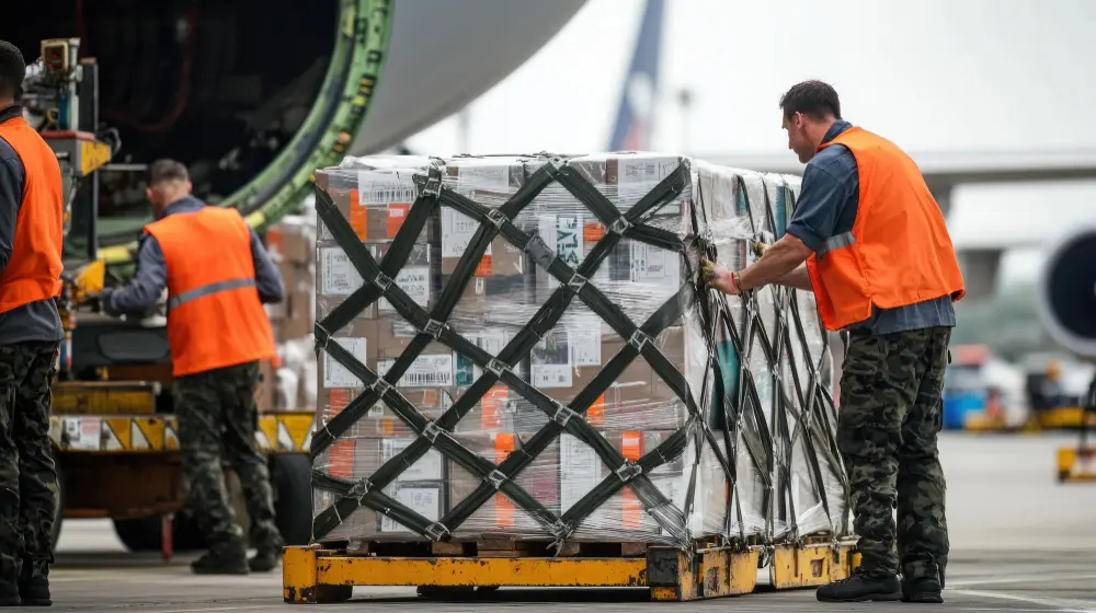 Professional cargo lashing using industrial materials to secure heavy or oversized shipments, preventing movement and ensuring safe transport.